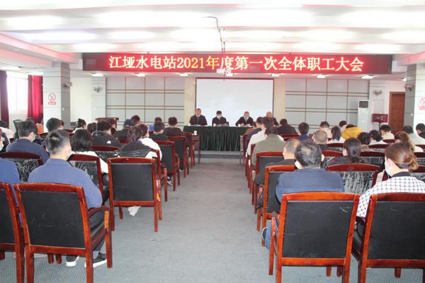 3月11日,江埡水電站召開2021年度第一次全體職工大會。深入學習公司2021年工作會議上文柏海董事長的講話和王志宏總經理所作的工作報告,總結回顧2020年電站工作,部署安排2021年重點工作,宣讀并表彰電站上一年度優秀個人和先進典型。