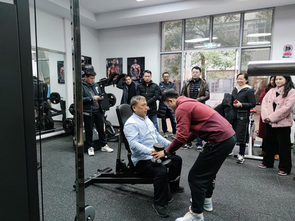 培訓中,兩位教練詳細講解了健身房10款器械的功能和特點,示范傳授了正確的使用方法,并以一套背部訓練為例,指導大家制定“循序漸進”的個人健身計劃。大家紛紛脫下外衣、先后上“陣”,在教練指導下,體驗每項訓練正確的肌肉發力感,享受鍛煉帶來的舒適和放松,現場氛圍持續升溫,參訓人員收獲頗豐。